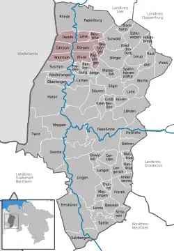 NetherlandsCloppenburg (district)County of Bentheim (district)Leer (district)Osnabrück (district)AndervenneBawinkelBeestenBockhorstBörgerBreddenbergDersumDörpenDohrenEmsbürenEsterwegenFrerenFresenburgGeesteGerstenGroß BerßenHandrupHarenHaselünneHeedeHerzlakeHilkenbrookHüvenKlein BerßenKluseLähdenLahnLangenLathenLeheLengerichLingenLorupLünneLünneMeppenMessingenNeubörgerNeuleheNiederlangenOberlangenPapenburgRastdorfRenkenbergeRhedeSalzbergenSchapenSögelSpahnharrenstätteSpelleStavernSurwoldSustrumThuineTwistVreesWalchumWerlteWerpelohWettrupWippingen