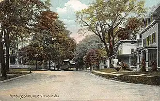 The Danbury and Bethel Street Railway was a streetcar transit operator serving the greater Danbury, Connecticut, area, originally chartered in 1886. It was one of the few trolley companies to remain independent of the Connecticut Company consolidation of transit lines throughout the state. Electric trolley service between Danbury and Bethel began in 1887. The streetcar line connected to the Danbury and Harlem Traction Company at the Fairgrounds, but no service was provided and the line was abandoned by 1910. The Danbury and Bethel Street Railway faced its first financial difficulties in 1914 as ridership declined with the closure of local factories. The construction of an aborted extension to Bridgeport had nearly exhausted the railway's cash reserves. The company was purchased by J. Moss Ives in 1918 with the intention of bringing the operation back to profitability. The first buses were ordered and put into operation in 1912 between Main Street and Lake Avenue in Danbury. Ives reorganized as the Danbury and Bethel Traction Company in 1925. When the proposal to replace all remaining streetcar lines with bus operation was announced, the trolley motormen all went on strike in November 1926. The work stoppage did not affect the transition, and by the end of 1926 all streetcar operation had been abandoned, making it the first line in Connecticut to completely convert to bus operation.[1]