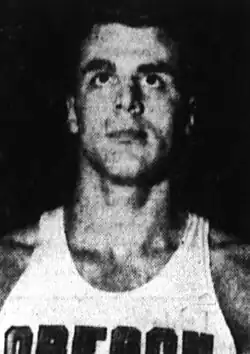 Gambee chose to stay in town and play college basketball at Oregon State University.[1] Following the 1957–58 season, the 6-foot-7 Gambee was OSU’s career leader in points scored (1,468), was No. 3 in rebounds (828) and he had five 30-plus scoring games. Gambee was named an All-American twice while at Oregon State. He garnered those high honors in 1957 and 1958, and was also a first-team All-Pacific Coast Conference selection both years. He led the Beavers to the 1958 Pacific Coast Title and to three Far West Classic Championships. He was the 1957 Classic MVP. While at Oregon State, Gambee also was a 1st baseman and a pitcher on the Beaver Baseball team as well.