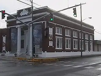 The DeRidder Commercial Historic District has been the trading center of the parish since about 1905. From 1918 to 1920 several buildings, including the First National Bank, were built. When the lumber boom ended in 1925, the commercial district was enough developed to survive and avoided DeRidder to become a ghost town. The fact the district was mainly composed by brick buildings helped it remain quite intact, despite numerous fires happened over the years.[2]