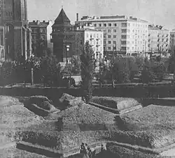 As early as September 5, barricades and anti-tank barriers began to be constructed in Ochota,[35] particularly blocking key routes leading into the city. The civilian population actively participated in their construction.[36] Minefields were laid in the outskirts.[37] Obstacles, fortifications, and mines were also set up in Wola.[38]