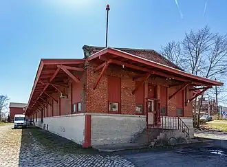 The Delaware and Hudson Railroad Freight House is a historic railroad building located at Cohoes, Albany County, New York. The freight house was built in 1910 by the Delaware and Hudson Railway. It is a one-story, rectangular brick building on a raised, battered concrete basement. It measures approximately 40 feet (12 m) wide and 300 feet (91 m) long, and has a low pitched gable roof.[2]: 3