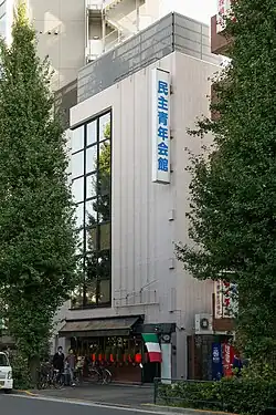 The Democratic Youth League of Japan (日本民主青年同盟, Nihon Minshu Seinen Domei), abbreviated DYLJ or Minsei (民青, みんせい), is a political youth organization in Japan. It is the youth wing of the Japanese Communist Party, as well as an organizational body of Zengakuren. Minsei describes itself as a "voluntary youth organization in response to a keen demand of the youth, aiming towards a better life, peace, independence, democracy and social progress".[1] Its main activities are the peace movement, opposition to tuition hikes, petitions, volunteer work and educational activities and the like.