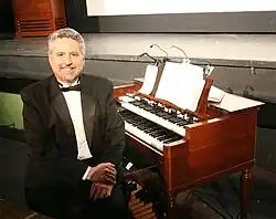 James began performing films in October, 1969 and soon in full scale revival performances together with symphony orchestras beginning in 1971.[5] From 1975 to 1989, James was "Resident Organist for the Ohio Theatre" in Columbus, Ohio having revived a bygone era professional position vacated in 1942.[6] James had his organ concerto with orchestra debut with the Chicago Symphony at Orchestra Hall in 1984.[2] James toured in the 1980s with silent film stars Lillian Gish and Charles ‘Buddy’ Rogers, providing musical accompaniment on national tour revivals of their motion pictures.[6] The New York Times reported on December 13, 1981 that James would play at the recently restored Pascack Theater in Westwood, New Jersey, a deluxe movie house with facilities for stage productions and a specially built Wurlitzer pipe organ for accompanying silent films. James "follows the technique and style of the old-time accompanists, cueing the music exactly to the action and mood on the screen."[7]