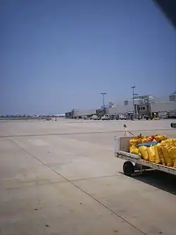 The two-level terminal opened in November 2004. The old terminal building was demolished soon after. The terminal has areas for ticketing and baggage claim and upper and lower courses with gates. The first level has Gates A1, A2, and A3 and waiting areas and a concession area. The second-level concourse has Gates B1, B2, B3, B4, B5 and B6. B3 is rarely used due to a lack of flights during the slow season. B5 is rarely used due to a lack of a jetway. Passengers have to descend a narrow stairwell and isn't very conducive to safe and speedy boarding of the aircraft. The second-level concourse also has a restaurant and concession areas. The terminal was designed to allow future expansion. Concourse C, completed in 2022 for Allegiant Air's exclusive use, is located to the west of the main terminal. The $11.4 million-dollar, 26,000 square foot expansion includes 5 new ground-level gates, along with multiple food and beverage options.[18] However, passengers will still have to check in, as well as collect baggage, at the main terminal.