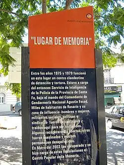 69. ^ "La provincia quiere transformar un ex-Centro Clandestino de Detención en un lugar de vida y esperanza | Dictadura, Ricardo Silberstein, Rosario". Uno Santa Fe. July 21, 2017. Archived from the original on August 29, 2017. Retrieved August 29, 2017.