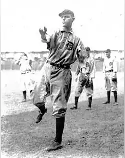 A Philadelphia native, Leinhauser was a noted amateur welterweight boxer.[13] In the replacement game, he took Ty Cobb's spot in center field. He had no hits and struck out three times in four plate appearances. Defensively, he had only one chance and was credited with an assist and no errors.[14] Leinhauser later recalled that he wore Cobb's uniform and used his glove while playing in center field.[13] According to one account, "when Leinhauser's wife found that he had the audacity to replace the great Ty Cobb, she hit him with a skillet."[10]