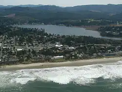 Devils Lake is a small lake in Lincoln County, Oregon, United States, along the Oregon Coast.[1] It separates the northern part of Lincoln City from the Central Oregon Coast Range. It is 1/3 of a mile wide, three miles (5 km) long, and up to 21 feet (6.4 m) deep. The D River flows from the lake westward to the Pacific Ocean. At 120 feet (37 m), it once contested with the Roe River in Montana for the title of the "World's Shortest River", until in 2006 the heated debates and technicalities caused the Guinness World Records to no longer recognize the accolade.