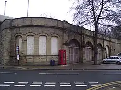 The station had a single large island platform with a glass roof accessed from below through an entrance on Crackenedge Lane. This entrance survives as part of the embankment, which after the closure of the railway had the A638 Dewsbury Ring Road built over it.[4] As well as this, some sections of the nearby trackbed have been preserved and turned into a footpath.[3]