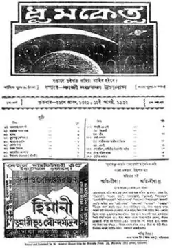 Dhumketu (Bengali: ধূমকেতু dhūmkētu, "comet") was a bi-weekly magazine edited by Kazi Nazrul Islam which was first published on 11 August 1922. The magazine was started with a four-page format, later elaborated to eight pages.[1] The last issue of the magazine was published in March 1923. Many of the popular poems of Nazrul including Anandamoyeer Agamane, Dhumketu etc. were published in this magazine. Sarat Chandra Chattopadhyay also contributed to the magazine.[1]