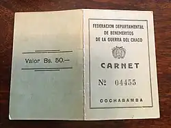 Record from Departmental Federation of Benemeritos of the Chaco War about Diógenes Lara