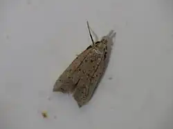 The wingspan is about 14 mm (0.55 in). The forewings are grey with conspicuous blackish dots and a larger median dot at one-fifth, preceded by a smaller dot beneath the fold, a small median dot at two-fifths, preceded by a larger dot on the fold, a dot above the middle, and a median dot at three-fifths, a dot on the tornus, another between this and third median dot, and sometimes a dot preceding this last. There is a series of dots around the apex and on the termen. The hindwings are grey.[3]