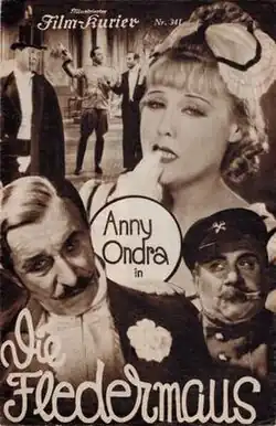 Die Fledermaus is a 1931 French-German musical film directed by Karel Lamač and starring Anny Ondra, Georg Alexander, and Oskar Sima.[1] It is an operetta film based on the 1874 stage work Die Fledermaus by Johann Strauss.
