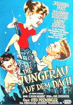 Die Jungfrau auf dem Dach (English translation: "The Virgin on the Roof") is a 1953 American comedy film produced and directed by Otto Preminger. The screenplay by Carl Zuckmayer is a German language translation of the script for The Moon Is Blue by F. Hugh Herbert, based on his 1951 play.
