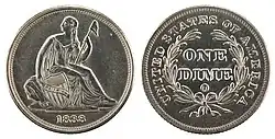 - ^ History of the Seated Liberty Dime (Variety II) Archived 2019-08-05 at the Wayback Machine Retrieved on 2010-2-9