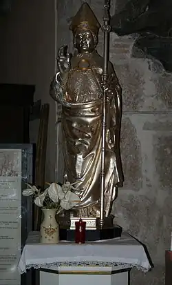 The arm-reliquary of Saint Emygdius is made of gold-plated silver, stands 87 cm high, in the shape of an arm ending in the hand of blessing, contains a relic of Saint Emygdius. The arm rises up from a base in the shape of a hexagonal star made of superimposed disks. The reliquary, attributed by Emile Bertaux to goldsmith Pietro Vannini, was made in the 15th century and commissioned by the priest Giovanni di Filippo, as written in its inscription: «HOC OPUS FECIT FIERI DOMINUS IHOANNES PHILIPPI SAC.»