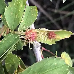 Diplolepis bassetti, also known as the mossy rose gall wasp, is a species of cynipid wasp that induces bud galls on wild roses in North America.[1] Hosts include interior rose, Nootka rose, and pine rose.[1]