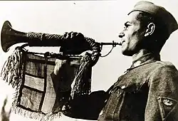 A new era of Greek military music began during the First World War. A General Inspectorate of Military Music based in Athens and a military music band based in Thessaloniki were both established.[9] Defined the concept of military music as one consisting of folk bands, choirs and model bands. At the time, each band had the following numbers: 76 people (Military Band of Athens), 50 people (Military Band of Thessaloniki) and 42 people (Army Band). From 1917 to 1937, the inspectorate was led by internationally acclaimed National Composer of Greece and later a member of the Academy of Athens Manolis Kalomiris.[10] Alexander Kazantzis (director of the Thessaloniki State Conservatory and professor of violin) occupied the position of Thessaloniki Inspector until 1929 when the post was demobilized and abolished. The Department of Military Music took part in the Asia Minor campaign of the Greco-Turkish War (1919–1922), following the 1st Battalion's Army Headquarters in their military operations.[5]