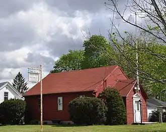 The District Five Schoolhouse, also known as the Fenner Hill School, is a historic former school building at 449 School Street in Webster, Massachusetts. Built in 1835, the one-room schoolhouse was the first school building built by the recently incorporated town of Webster. It served the town as a school for 100 years, after which it was used by the school system for storage. In 1966 it became the museum and headquarters of the Webster-Dudley Historical Society.[2] The building was listed on the National Register of Historic Places in 1991.[1]