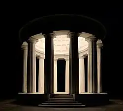 The District of Columbia War Memorial commemorates the more than 26,000 "residents and citizens" of the District of Columbia who performed military service in World War I, including the 499 who gave their lives in that service. Located on the National Mall, it was constructed in 1931 as a domed, peristyle Doric temple designed to serve as a bandstand for public events. In a practice unusual for the time, the names are listed in alphabetical order, without regard to rank, gender, race, or national origin.[1]