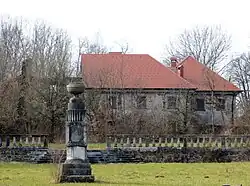 The ruins of Dol Mansion (Slovene: dvorec Dol, German: Lustthal) stand in the southeast part of the settlement. The mansion was built in 1540 by Alexander Gallenberg after he abandoned Osterberg Castle above Podgrad. The mansion was later purchased by the Rasp family, and then by Johann Daniel Erberg from Kočevje. Under a later owner, Josef Kalasanz von Erberg, the mansion was turned into a museum of natural history, technology, art, and literary history in 1808, to which a valuable library and archive were added in 1810, creating the most extensive private collection in Carniola. A botanical garden was set up around the mansion with thousands of different species, and the watercourses around it were regulated. After the death of the last member of the Erberg family, the mansion passed through various hands, and was purchased by Fran Povše in 1882. The Partisans burned the mansion in 1944.[3]