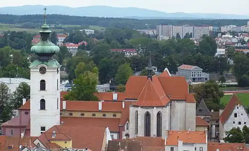 Dominican Monastery (Czech: Dominikánský klášter) is the oldest gothic monument in České Budějovice. It consists of Church of Presentation of Virgin Mary and town fortifications. It is situated in south-western part of the historic centre between Street Česká, the bank of the river Malše and the Piaristic square were used to be the town cemetery. Today, the monastery belongs to the cultural heritage of the Czech Republic and there is placed the Artistic school.