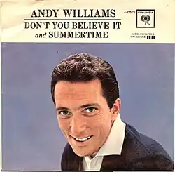 "Don't You Believe It" is a song written by Burt Bacharach and Bob Hilliard and recorded by Andy Williams. Released as a single, the B-side was a cover of the George Gershwin song "Summertime".[1]