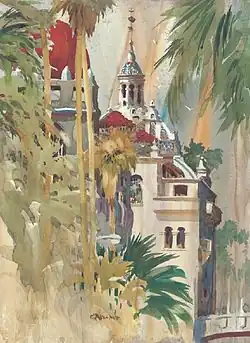 Don O'Neill, Mission Inn Towers. Watercolor, Riverside, California.