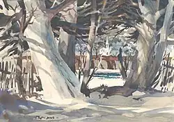 Don O'Neill, Through Cypress. Watercolor, Riverside, California.