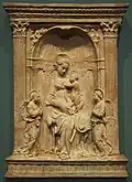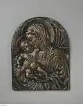 after Donatello | Madonna and Child in a niche | relief, low | bronze, silvered | 20.5 × 15.5 × 1, 2.54 kg | c. 1426–1430 (prototype) | Berlin, Bode Museum (Inv. 3044)[26] |