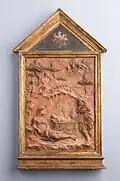 relief | terracotta, formerly painted and gilded | 47 × 35.6 × 8.3 (incl. frame: 82.6 × 48.3 × 8.3) |