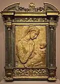Donatello attributed[25] | Madonna and Child | relief | terracotta, gesso primer/stucco, painted, wooden back | 102.5 × 62.2 × 28.3 | c. 1410–1415 | Washington, National Gallery of Art, Samuel L. Kress Collection (Inv. 1943.4.93) |