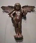 perhaps Donatello workshop | Spiritello with Fish | statuette, probably from a font at a wall | bronze | 40.5 × 40.4 × 11, 7 kg | 1435–1440 | London, Victoria and Albert Museum (Inv. 475-1864) |