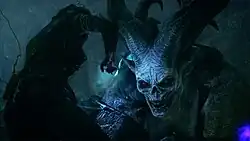 The Descent is a downloadable content (DLC) pack for the 2014 action role-playing video game Dragon Age: Inquisition. The player assumes the role of the Inquisitor, the leader of the organization known as the Inquisition.[1] In The Descent, The Inquisitor receive reports about unnatural earthquakes of unknown origin rumbling through the Deep Roads, once a thriving a connection of trade, collapsing mine shafts and threatening the trade of lyrium, a mineral substance vital to the practice of magic as well as efforts to counteract it in the Dragon Age setting.[2] Answering the call for aid from their dwarven allies, the Inquisition sets out on an expedition to investigate the source of the earthquakes. Much of the pack's dialogue consists of interactions between the Inquisitor and two dwarves, Shaper Valta and Lieutenant Renn, who accompany the Inquisitor's party and fight alongside them as allies.[2] Valta in particular attributes the source of the earthquakes to the mythical beings known as Titans.[2]
