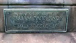 Plaque to William Barr Knox at Kilbirnie.