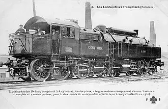 The du Bousquet locomotive was an unusual design of articulated steam locomotive invented by French locomotive designer Gaston du Bousquet.[1] The design was a tank locomotive, carrying all its fuel and water on board the locomotive proper, and a compound locomotive. The boiler and superstructure were supported upon two swivelling trucks, in a manner similar to a Meyer locomotive.