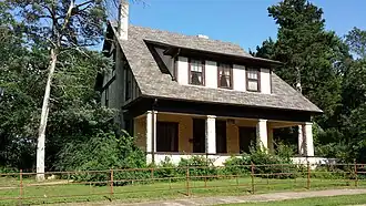 The Duckworth-Williams House is a historic house at 103 South College Street in Siloam Springs, Arkansas. It is a two-story stuccoed brick building, with a side gable roof that has a wide shed-roof dormer on the front. The roof extends across the front porch, which is supported by four stuccoed brick columns. The side walls of the house have half-timbered stucco finish. Built c. 1910, this is the only Tudor Revival house in Siloam Springs.[2]