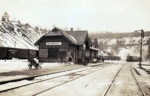 Dundas station was a passenger station in Dundas, Ontario, Canada. It was located halfway up the Niagara Escarpment west of downtown Dundas,[2] near where Hamilton Regional Road 8 (formerly Ontario Highway 8) crosses under the railway tracks.