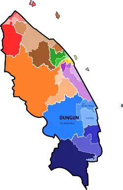 According to the federal gazette issued on 18 July 2023, the Dungun constituency is divided into 49 polling districts.[4]