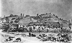 Although the hotel operated from 1850 until 1929, its heyday was from 1875 until 1910. In 1910, when US-101 was rerouted to bypass Jolon by nearly twenty miles, the town became a ghost town within a few years.[3] Dutton's son, Edwin Julian Dutton (1870-1921), took over management of the hotel when he was 21. He died in 1921. In 1929, the hotel was sold to William Randolph Hearst by the Dutton's widow, to become part of Fort Hunter Liggett. George Dutton and other members of his family are buried at the Jolon Cemetery.[5] Hearst removed the surrounding buildings and his hope was to restore the adobe in the old mission style and turn it into a museum, but it never materialized.[6]