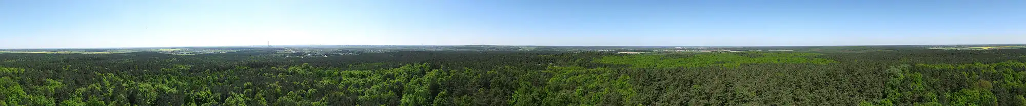 An observation tower, with a height of 40 metres (130 ft), was built at the summit of the hill in 2005. This is used for forest fire observation, and is also open to the public at certain times, offering wide views of the surrounding countryside and the city of Poznań.