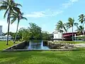 Lawrence created a lushly landscaped garden of royal palms with a guest house and a boat slip, and grew grapefruit on much of the remainder of his land. The royal palms remain, as do the boat slip, the steps, columns, and foundation of the guest house, and a water pump Lawrence used to irrigate the tropical plants and the grapefruit groves nearby.