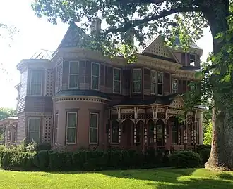 E. L. Evans House is a historic home located at South Boston, Halifax County, Virginia. It was built in 1892, and is a large two-story, five-bay, balloon-frame High Victorian style dwelling. The front facade features a projecting center gable holding cutaway bays on both the first and second stories, a three-story tower on the northeast corner, and a curved, projecting gabled bay. Also on the property is the contributing brick foundation for the former ice house.[3]