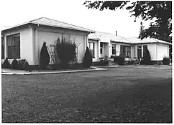 Copeland began digging the basement in advance of the bond issuance, then continued pouring the foundation, and beginning construction of the brick structure.[3]: 10 He utilized bricks from the Francis and Simpson Day brickyard, located on the banks of the nearby Little Colorado River.[4] While Copeland anticipated that construction would be completed by November, the school was not officially dedicated until December 6, 1930. The following year (1931–32), the school had a principal and seven teachers.[3] By 1940, the community felt the school needed a kitchen and cafeteria, which were added to the south side of that structure that year.[3]: 10 [4]