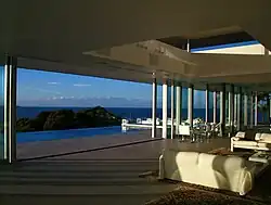 The Eagles Nest is a complex of five rental villas in the Bay of Islands of New Zealand, a few kilometres north of Russell. Located on a headland above the sea with good views of the bay, the secured compound is the most expensive rental accommodation of New Zealand, with a single night costing up to a five-figure sum in New Zealand $ (as of the mid-2000s), depending which of the villas are chosen.[1][2] Guests are also provided with amenities like personal chefs and Porsche cars.[1]