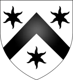 Arms of Mordaunt: Argent, a chevron between three estoiles sable