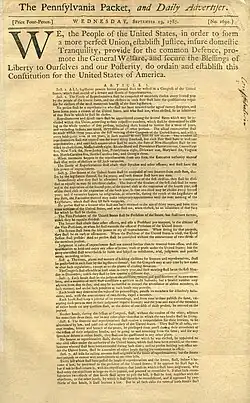 On September 17, 1787, The Pennsylvania Packet was the first to print the ratified U.S. Constitution.[190]  (page 1 of 4)