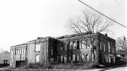 The building had fallen into disrepair when the Easley Chamber of Commerce applied for its recognition as one of the most-endangered properties in the state.[4] Occupants of the building following its use as a school had torn out interior classroom walls,[4] a portion of the roof had been destroyed as the result of wind damage from a 1998 storm (this was replaced with temporary corrugated metal sheets),[3] and metal panels had been installed over many windows to prevent water damage.[3] All but one original chimney as well as an entry porch on the building's south side had been removed, "virtually all windows and doors" and much of the plaster work were "severely deteriorated".[3]