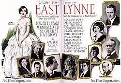 East Lynne is a 1925 American silent drama film directed by Emmett J. Flynn and starring Alma Rubens, Edmund Lowe, and Lou Tellegen. The film is based on the bestselling 1861 Victorian novel of the same name by Ellen Wood.[1] The scenario was written by Lenore Coffee and the film's director, Emmett J. Flynn.[2]