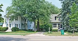 • Willis M. Fowler House (315 E. Michigan) Built in 1911, this 2+12-story frame house was constructed by builder Elwood Rogers for William Fowler, a real estate businessman. It has a hipped roof, projecting gables with fan-shaped windows, and an off-center entrance.[2]